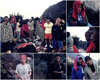 | Pagi harinya (17/11), setelah melewati malam yang cukup dingin, kami bangun pukul 4.00 WIB. Masak air dan mi goreng seadanya untuk menu sarapan pagi itu. |